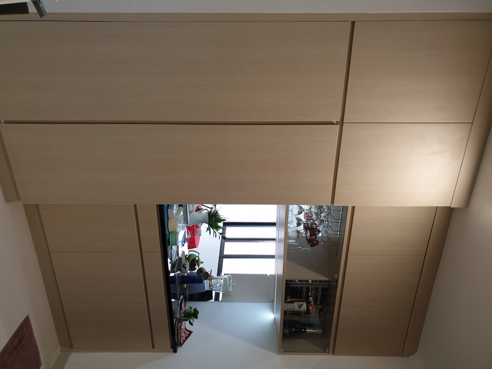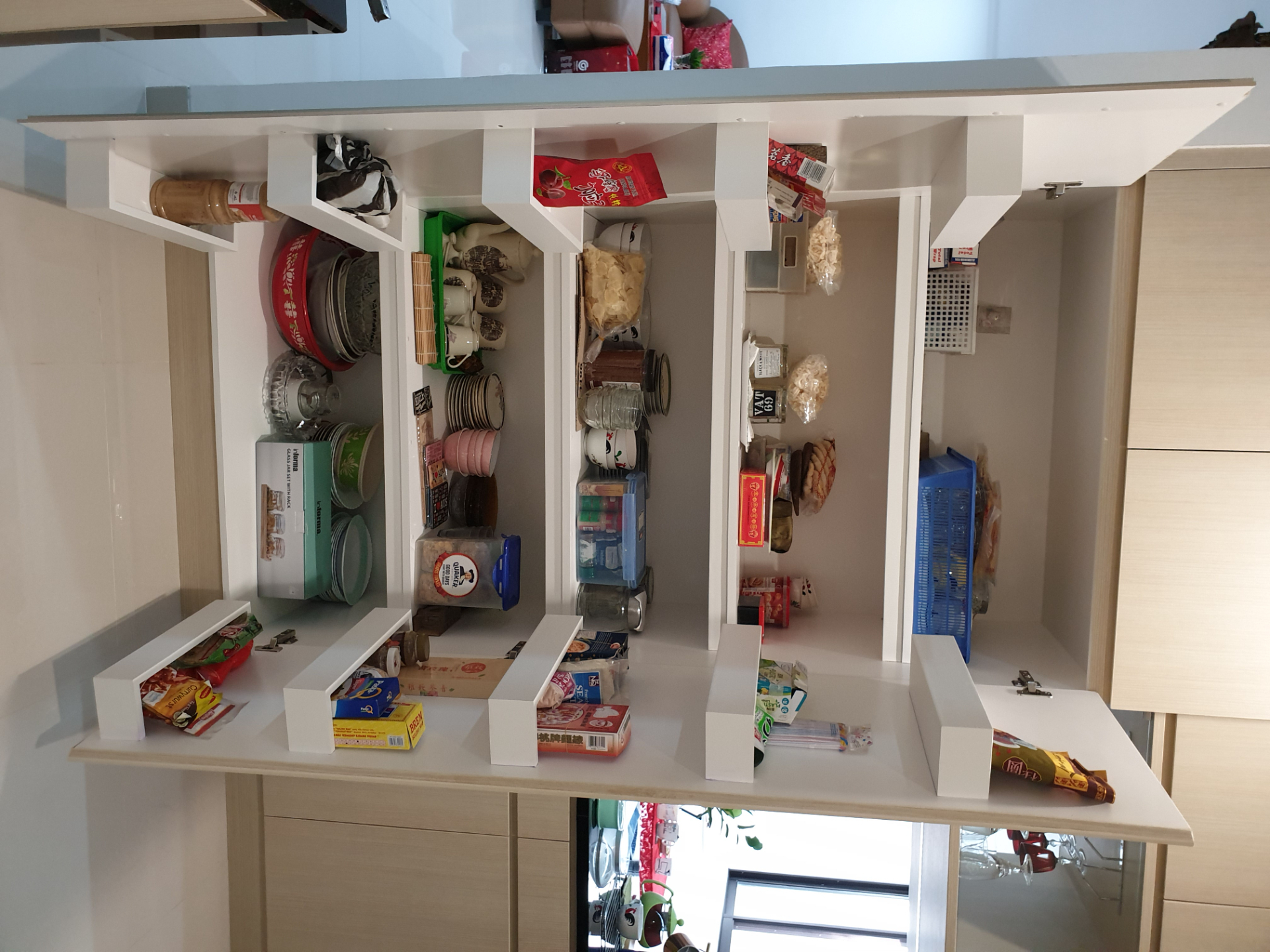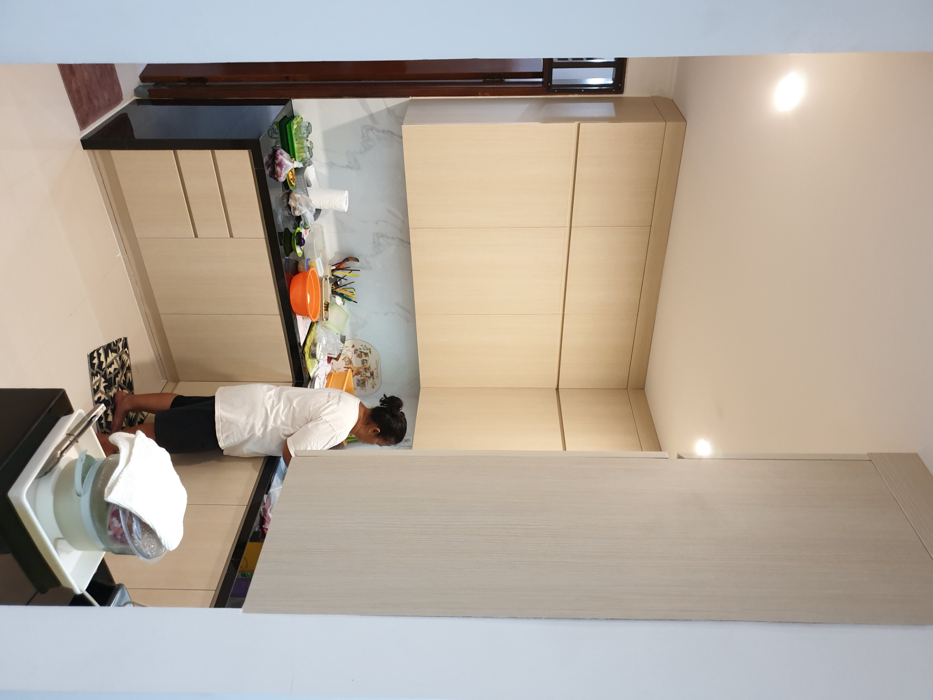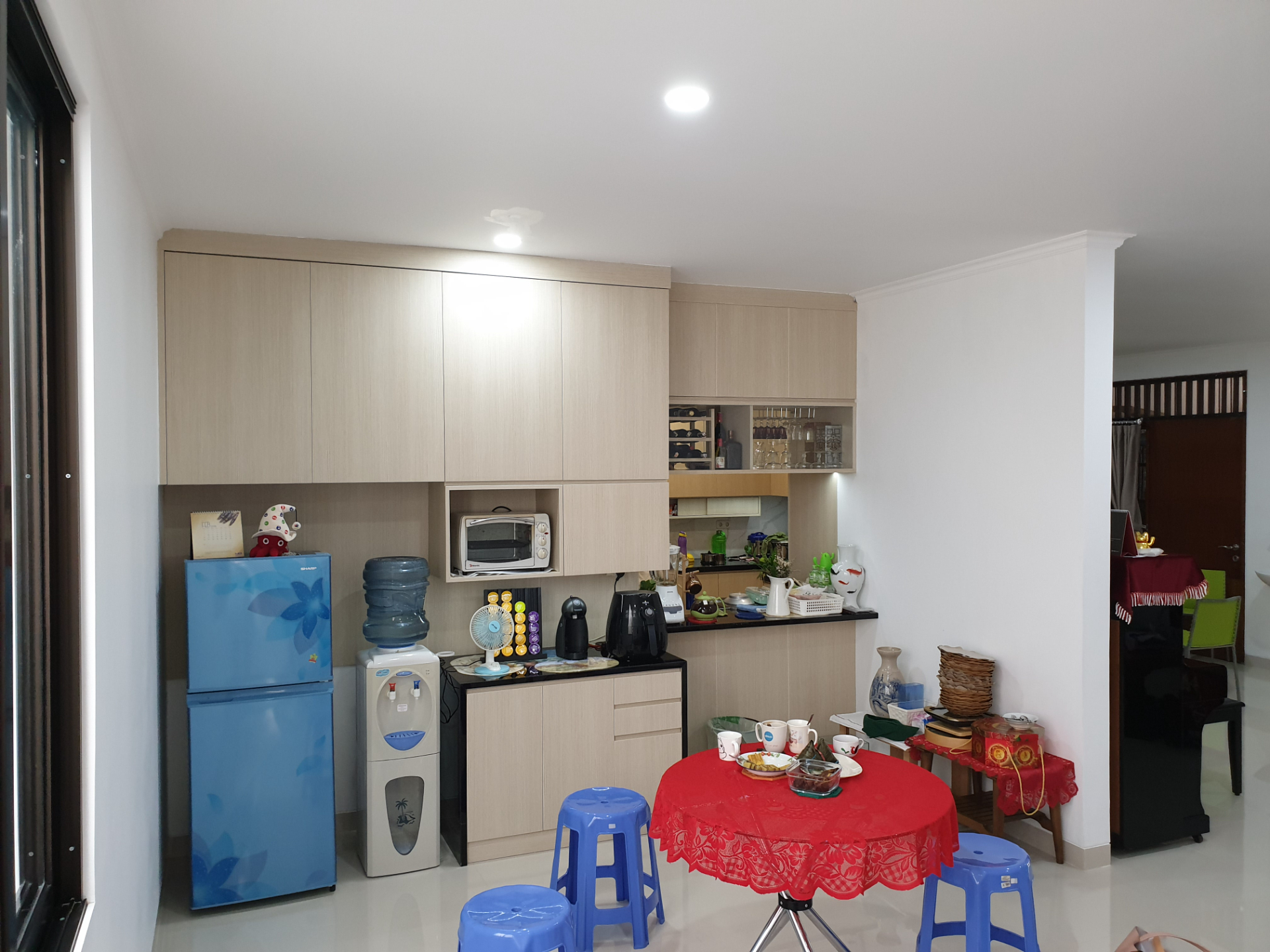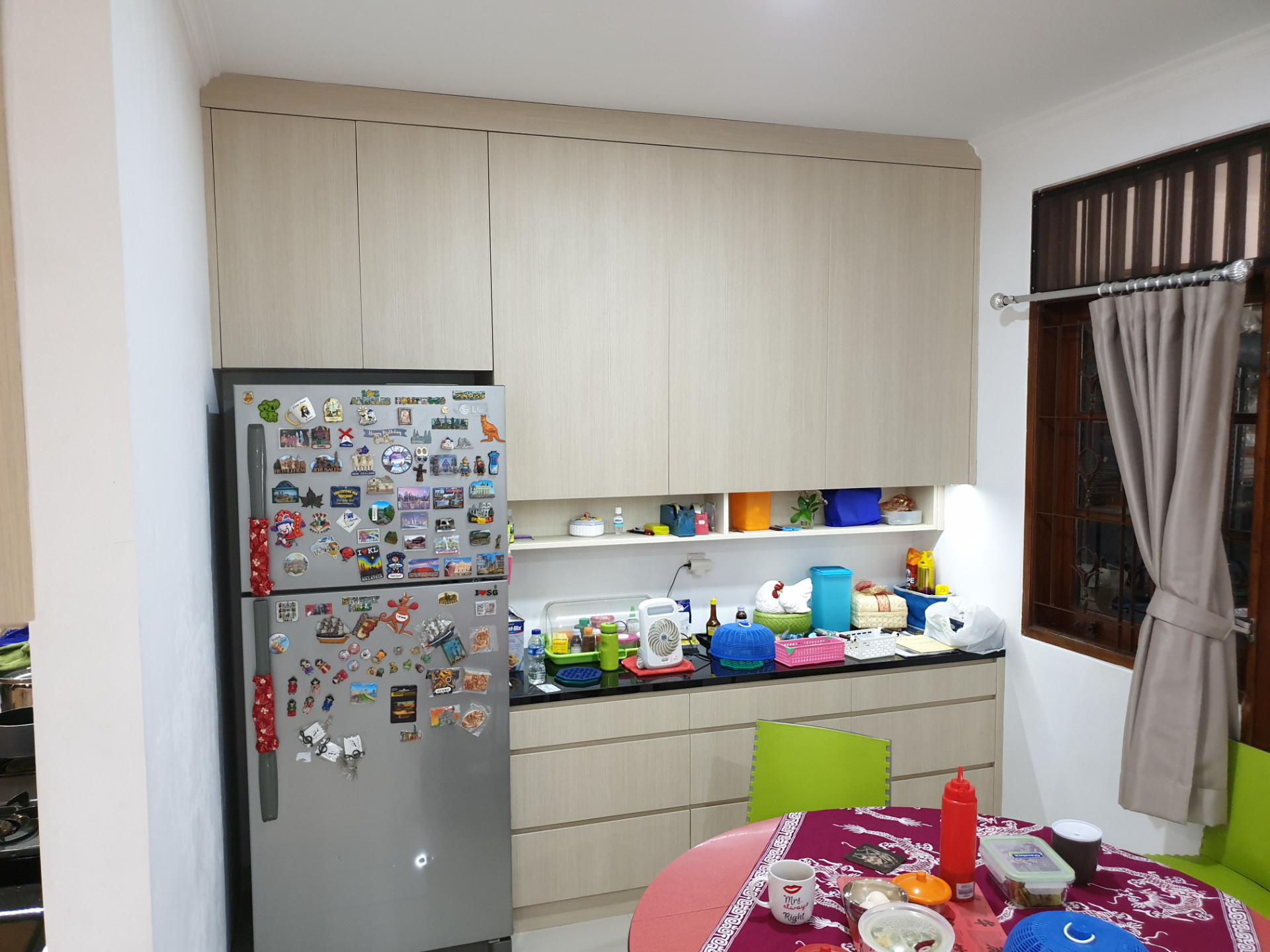 The kitchen area has always been the area where we spend the most time, so we need appropriate and efficient furniture. The minimalist design concept is applied with a plain design without a lot of details and the light brown color gives a light and spacious impression. With a black table top, it gives an additional elegant effect.