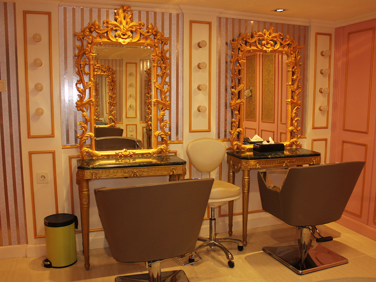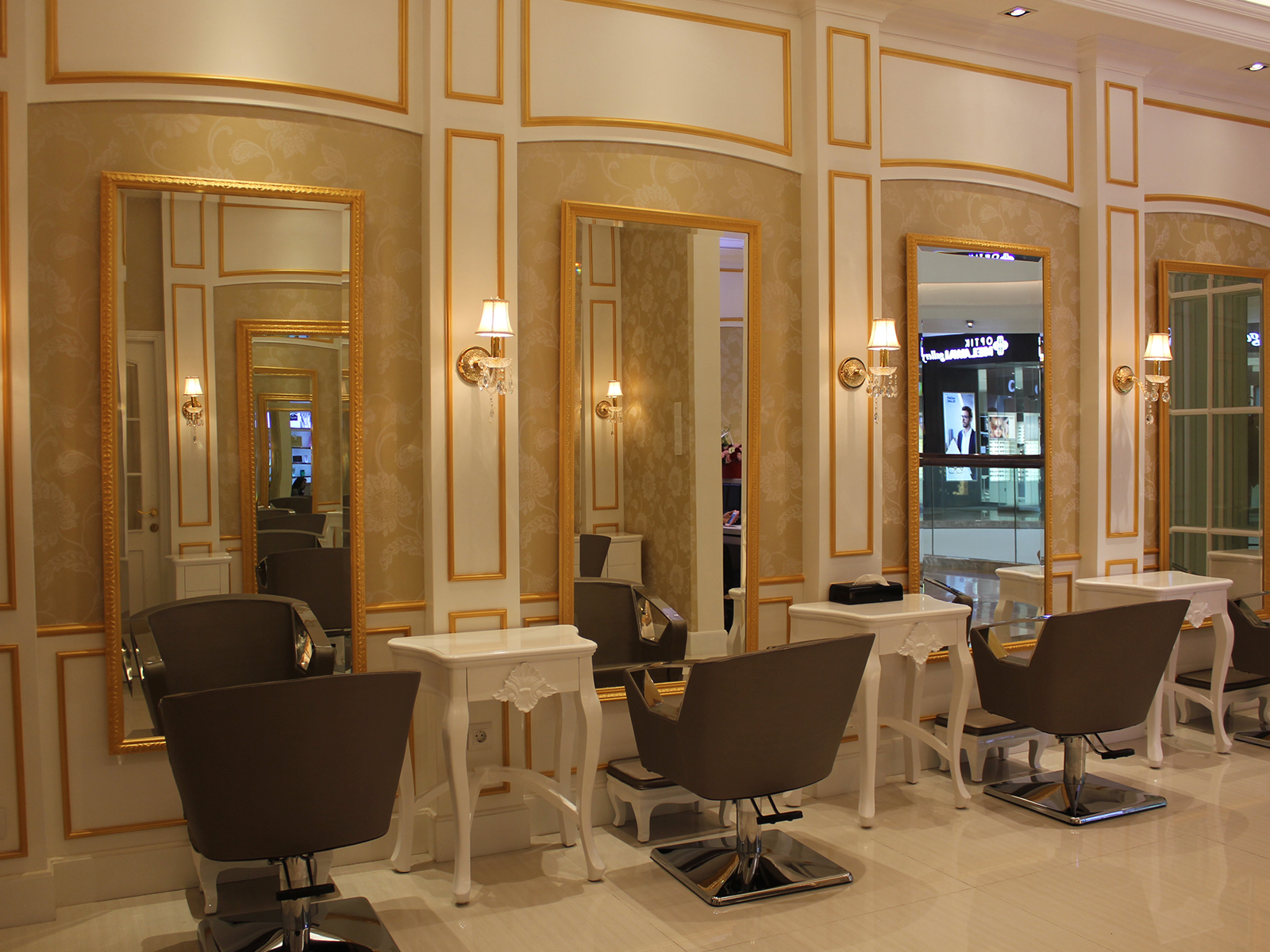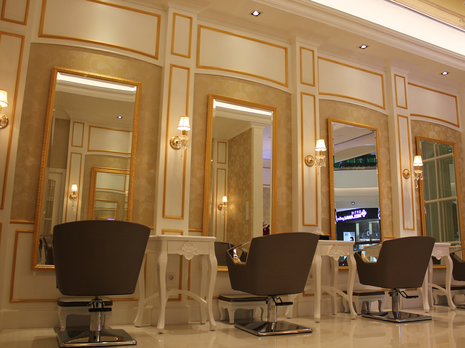 The Luvaz salon is located in a mall in North Jakarta, designed with a homy & beautiful classic concept, combined with white and gold colors, and on the mezzanine floor with white and pink, so visitors feel like they are doing a stylish personal hair in their own house.